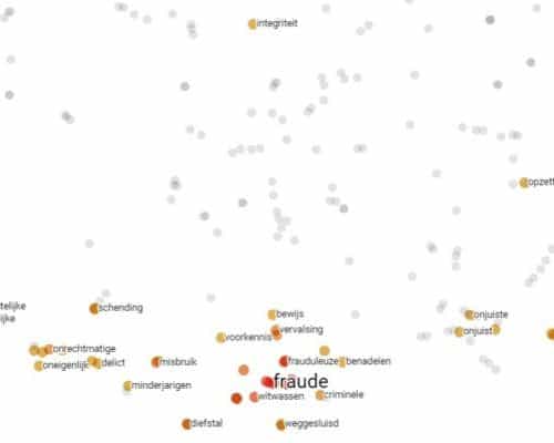 The above figure gives an impression of how word embedding works, where the distance between the words is a measure of the distance in terms of meaning. The closer to each other the words are, the more likely they are to be synonyms. In our risk descriptions we cluster these synonyms and replace them every time by the same word. In the case below, for example, the words ‘fraud’, ‘fraudulent’ and ‘money laundering’ would be considered to be the same. Risks which have the same meaning but which are described differently, therefore become equal. This makes the model more robust in dealing with certain word choices in a risk description.