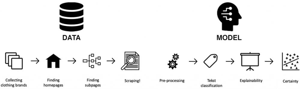 Pollution, bad working conditions and animal welfare are unfortunately topics that are often pushed away by profit. This holds for the modern ‘fast-fashion’ industry which produces most of our clothes. Fortunately, some brands and initiatives are making an effort, but how do you know as consumer? Searching for information is very time consuming. Which is why we used scraping, artificial intelligence, natural language processing and explainability to provide more sustainable clothing information, faster than current approaches.